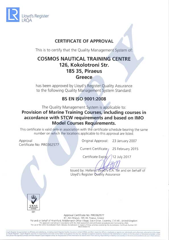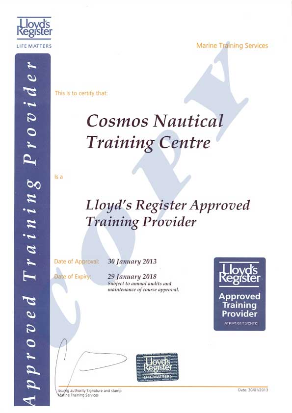 Cosmos Nautical Training Centre has been accredited by the Accredited by Transport Malta & Cyprus Maritime Authority.